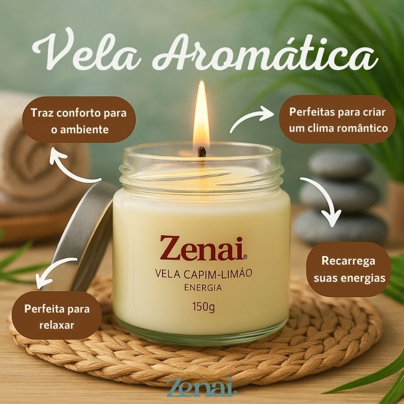 Destaques e diferenciais ZenaiProduzida com cera vegetal 100% natural – queima limpa e sustentável.