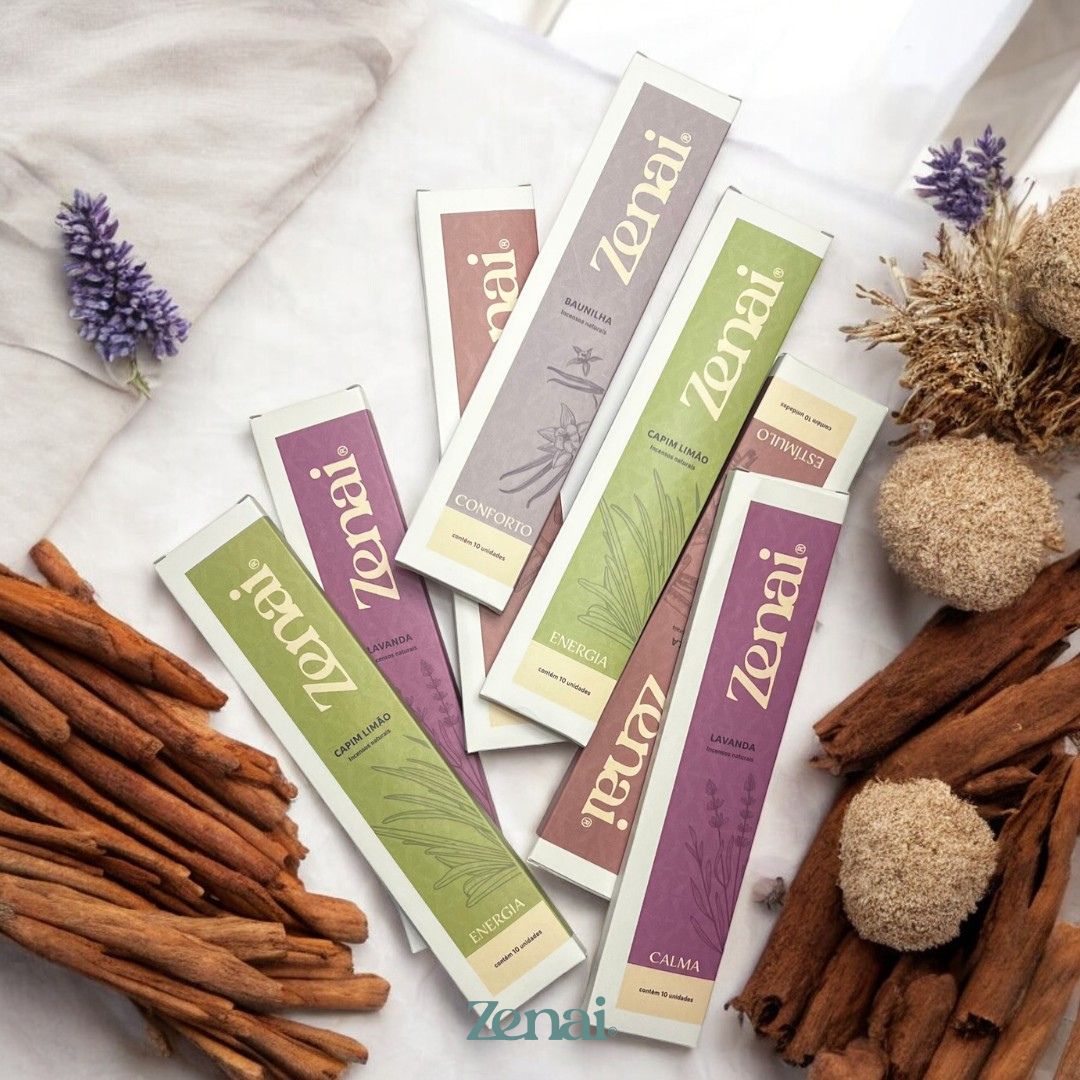 Personalize seu ambiente com a seleção de incensos artesanais orgânicos da Zenai, disponíveis em quatro aromas incríveis: Lavanda, Capim Limão, Baunilha e Canela. Cada vareta é feita com ingredientes naturais e veganos, garantindo uma experiência aromática pura e relaxante.